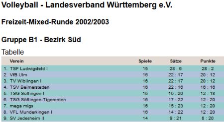 VLW Liga, Mixed 2/4 B1 Süd